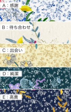 A:感謝 / B:待ち合わせ / C:出会い / D:純潔 / E:高貴