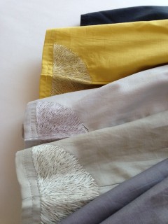 ベトナムから届いたワンピースやパンツ、ショール それぞれの片隅には Naomiさんデザインの美しい手刺繍が施されています