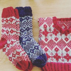 小さなベストとおそろいの模様編みで靴下をオーダーしたら